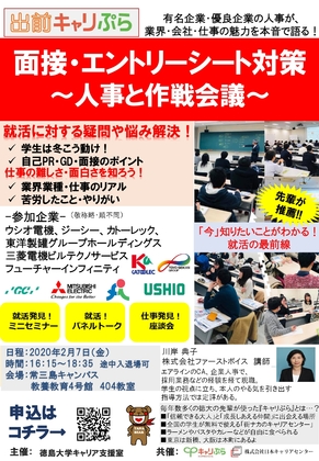 2020年2月7日(金)、徳島大学にて「エントリーシート対策・面接対策!人事と作戦会議」を開催いたします。