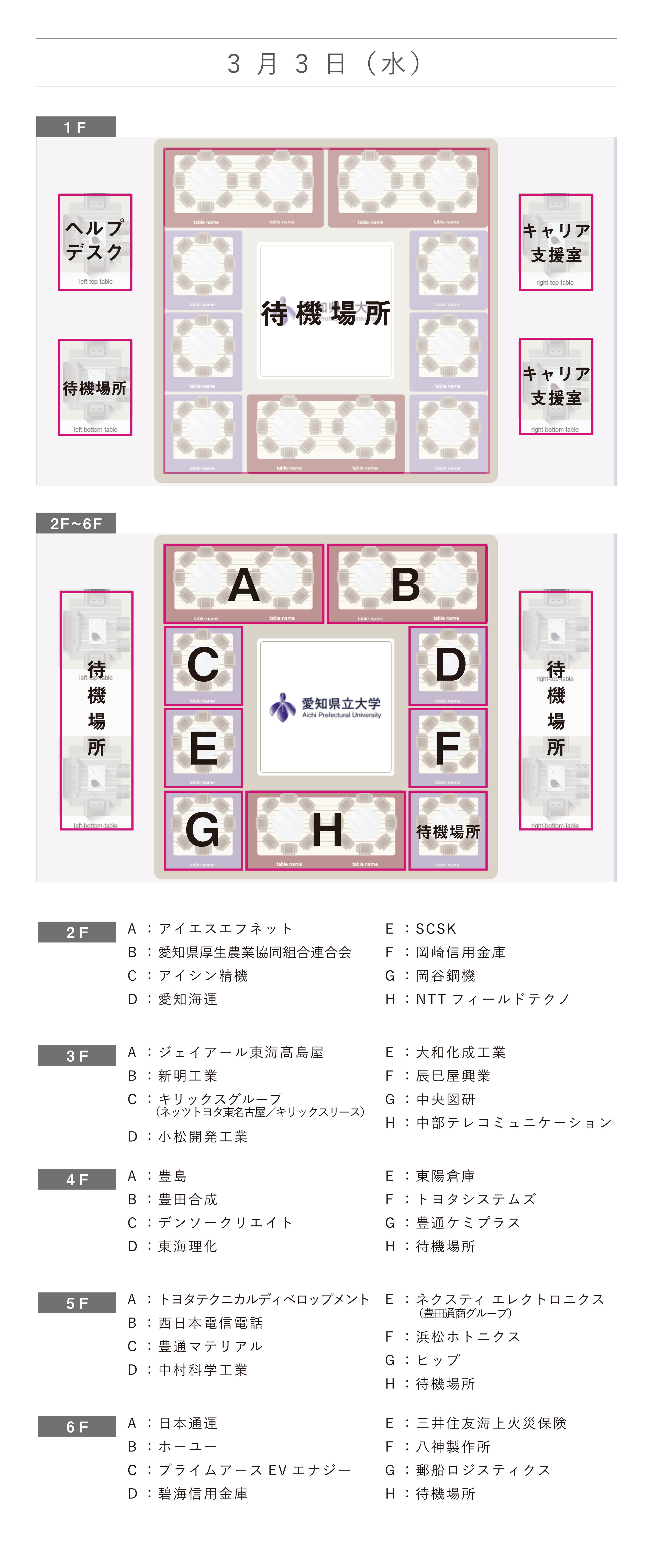 【愛知県立大学】オンライン学内企業説明会 会場MAP (3月3日開催)