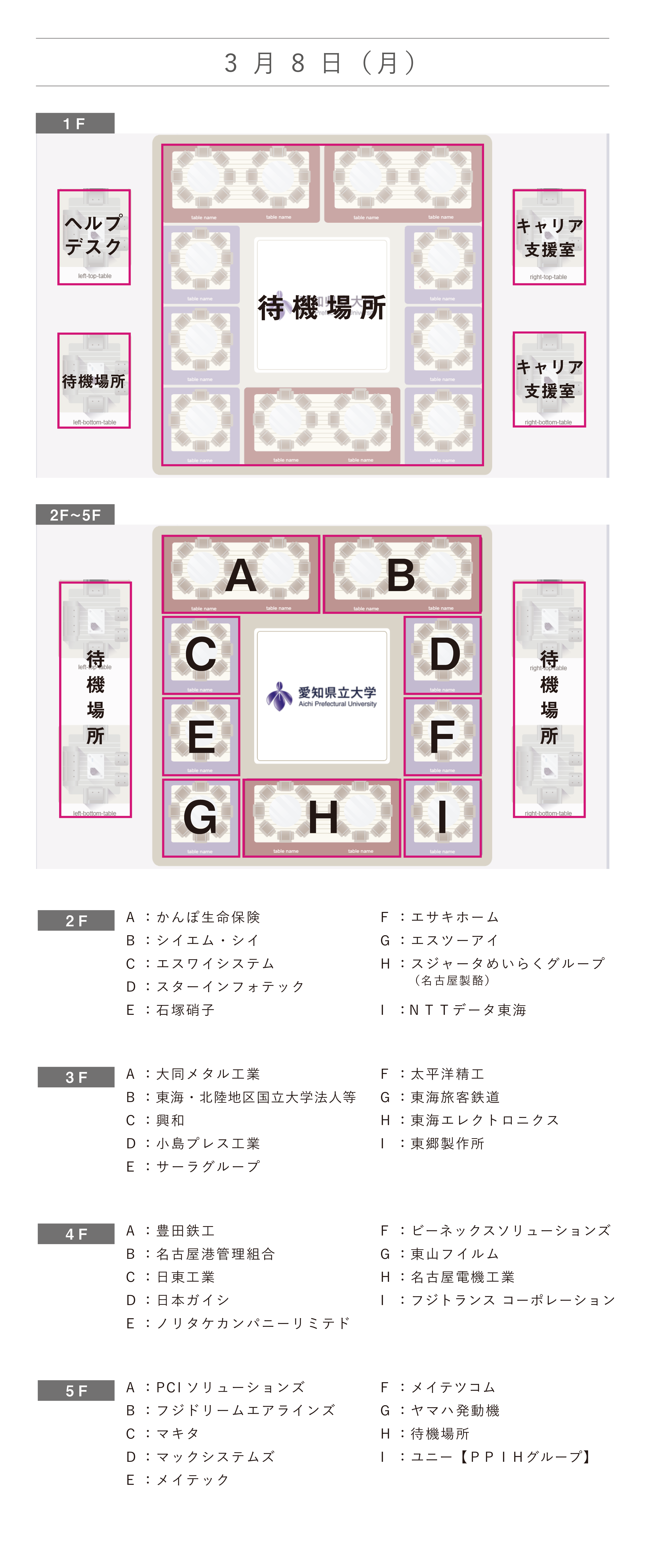 【愛知県立大学】オンライン学内企業説明会 会場MAP (3月8日開催)