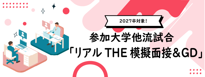 日程:2025年12月1日(月)、12月25日(木)、2026年2月20日(金) 時間:16:30〜17:55 内容:1社5分の会社紹介+模擬GD+フィードバック+交流会