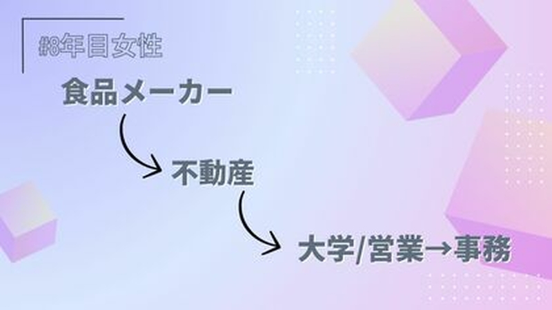 食品メーカー→不動産→大学/営業→事務/8年目/女性