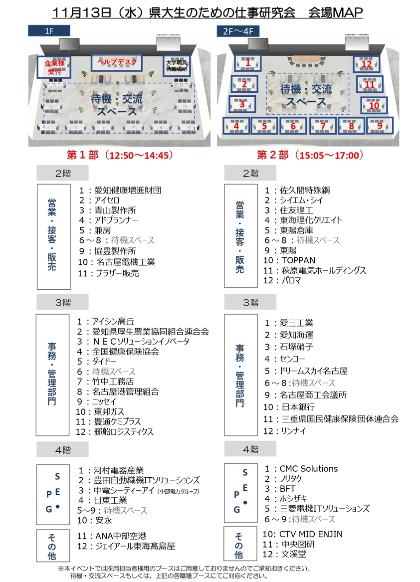 県大生のための仕事研究会「会場MAP&企業情報ページ」