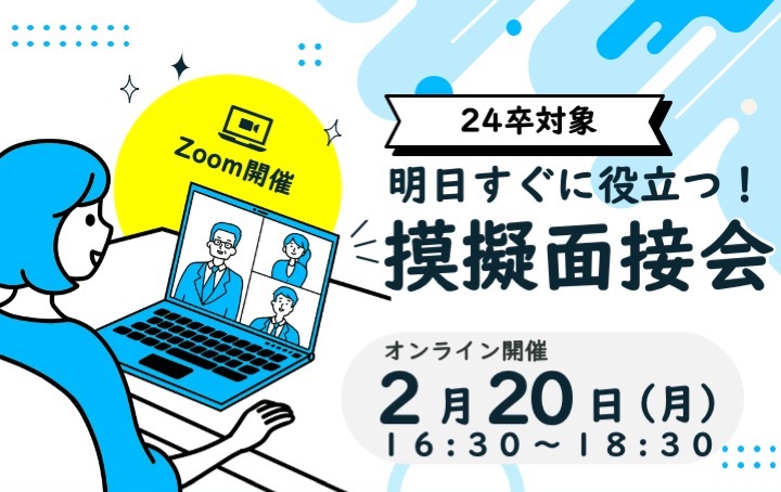 人事による模擬面接会。キミの強み、課題、面接のコツを人事の視点でフィードバック。