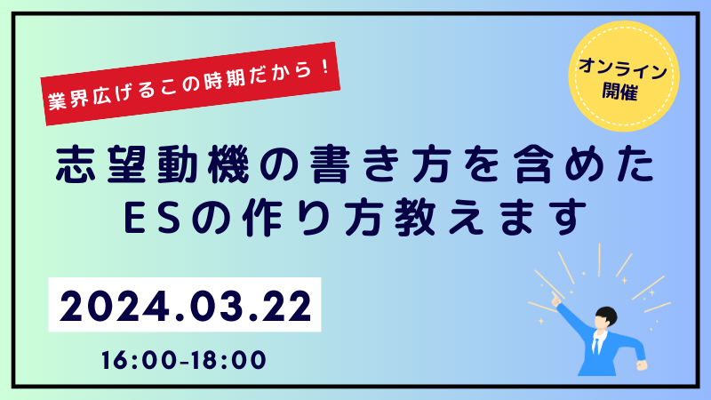 「業界を広げたときの志望動機の書き方を含めたESの作り方を教えます」