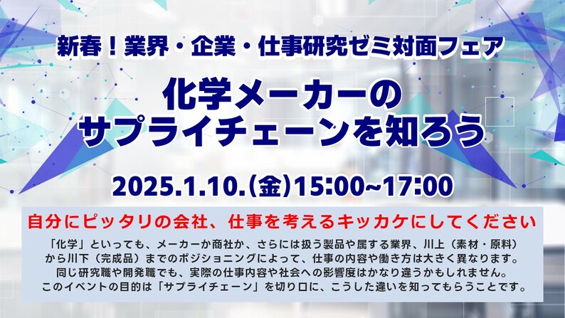 形式 | 対面+オンライン <対面の場合> 会場:長瀬産業本社ビル 東拓工業会議室 大阪市西区新町1-1-17 大阪メトロ四ツ橋線「四ツ橋駅」徒歩10分 |