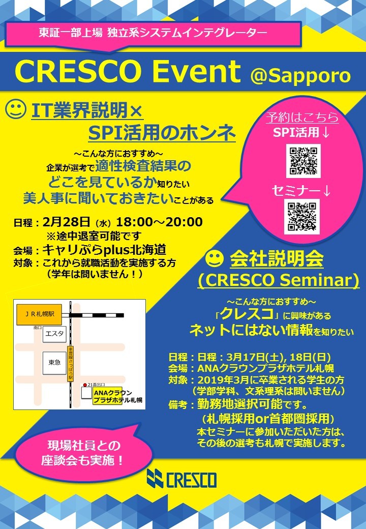 ※お申込の際に入力された情報は、キャリぷらplus北海道とクレスコからご連絡をおとりする以外に用途には使用しません。