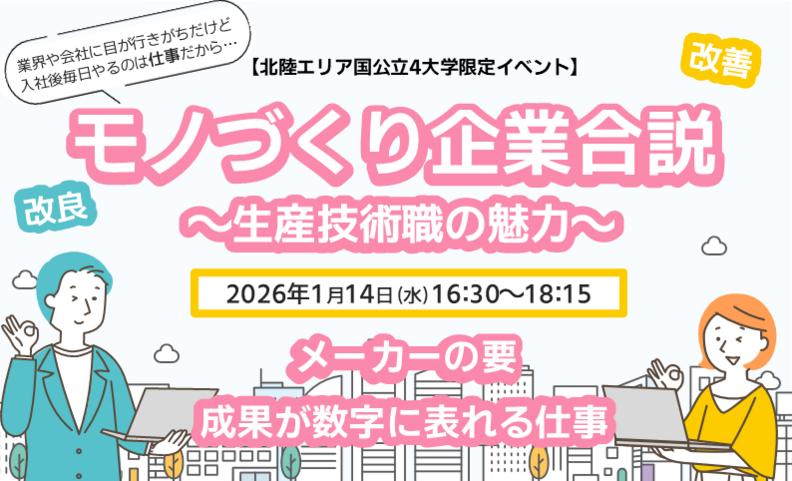 | 対象 | 北陸先端科学技術大学院大学、公立小松大学、富山県立大学、福井県立大学 の2027年3月卒業・修了予定の理系学生対象 |